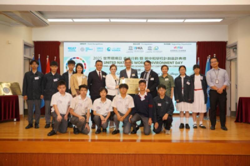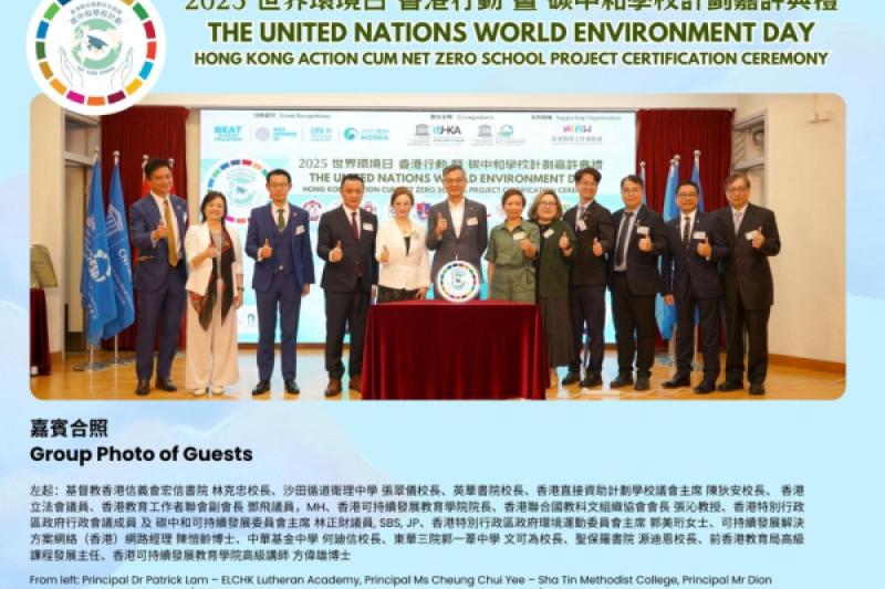環保教育及ESG組參與香港聯合國教科文組織協會與香港可持續發展學院合辦的「碳中和學校計劃」,獲頒授「碳中和示範校」嘉許牌,將可持續發展理念融入課程與校園管理,從碳報表的建立到碳審計,再延伸至項目製STEAM研學。活動在聯合國環境規劃署官方平台 United Nations "ACT4SDGs" 進行註冊, 為全球「世界環境日」行動之一,文校長更獲邀擔任「校長論壇」分享嘉賓,向社會分享低碳及可持續發展的理念與實踐。