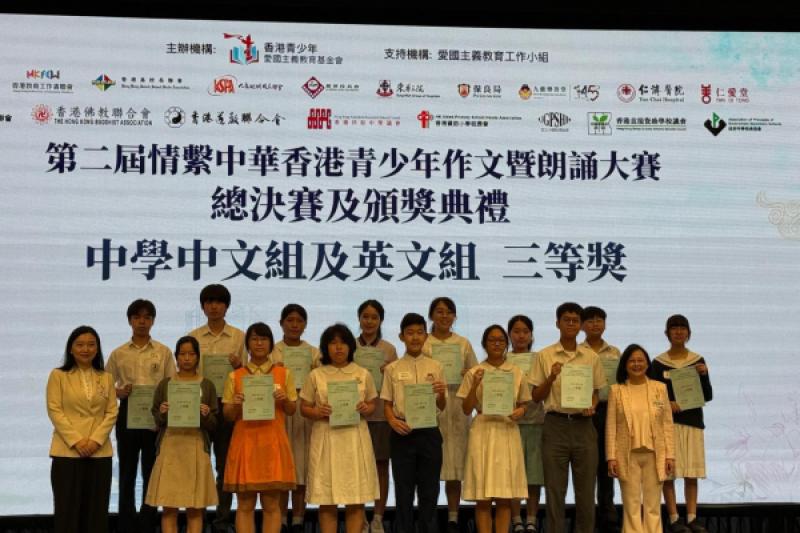 熱烈祝賀學生榮獲「第二屆情繫中華香港青年作文暨朗誦大賽獲三等獎」