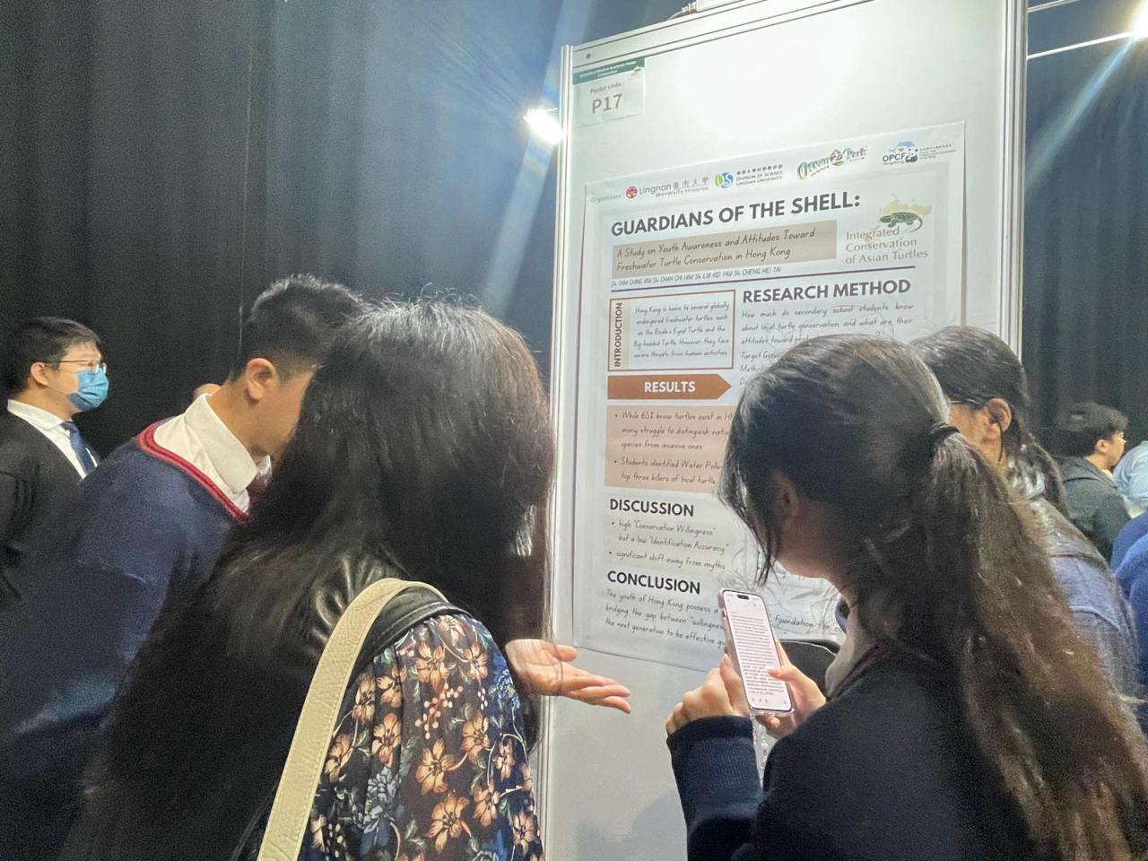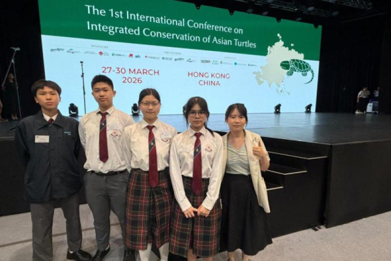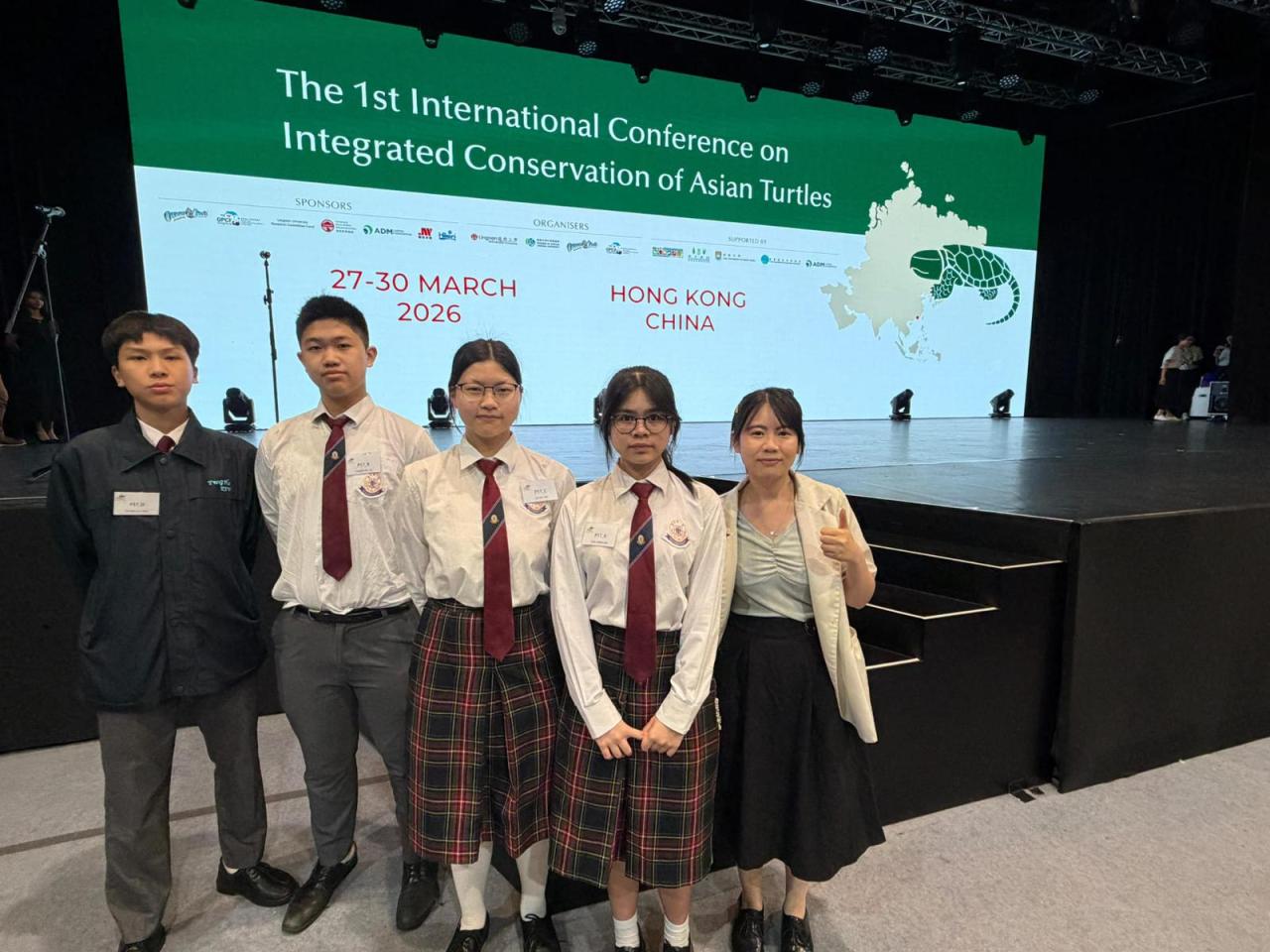 本校師生參與嶺大與海洋公園於 2026 年 3 月 27 日至 3 月 30 日合辦的「亞洲龜類保育國際會議」。四位學生首度挑戰海報比賽,全程以英語向不同專家匯報,展現保育熱誠。這次寶貴的國際交流機會,不僅鍛鍊了語言能力,更深植守護生態的使命感。