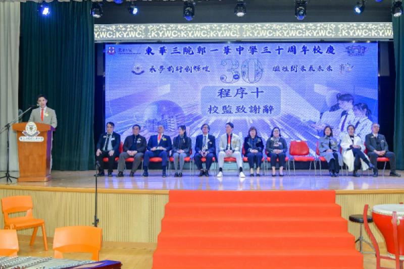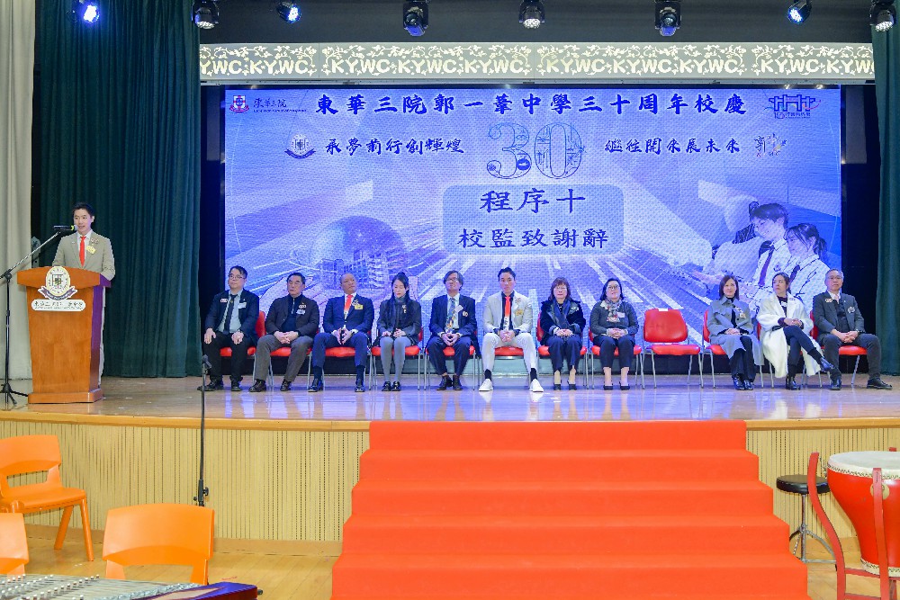 本校於 2026 年 1 月 9 日及 1 月 11 日舉行「三十周年校慶典禮暨開放日」,感謝主禮嘉賓教育局副秘書長課程及質素保證科陳碧華博士、主禮嘉賓香港教育大學協理副校長 (學術質素保證)及心理學系教授楊少詩教授、東華三院主席兼名譽校監何猷啟先生、本校校監東華三院第三副主席伍怡先生、東華三院董事局成員及各位嘉賓撥冗蒞臨,見證學生的成長及學校的發展。