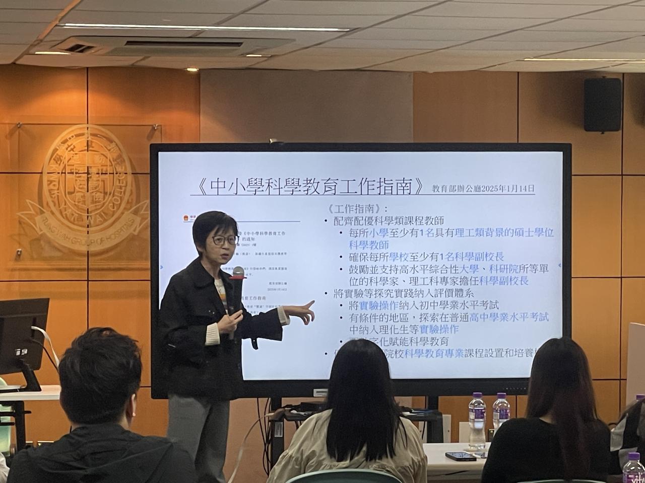 活動邀請了參與友校 元朗朗屏邨惠州學校 吳穎琦主任及伊利沙伯中學舊生會小學分校 朱浩祥老師和呂依雯老師,就小學科學科學與教的策劃-執行-回饋 過程的分享,並邀請 香港大學教育學院高級講師梁健儀博士進行點評及分享。