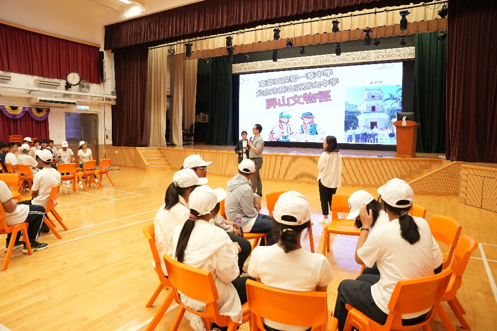 本校姊妹學校北京市房山区房山中学於 10 月 4 日,由張曦主任帶領 3 位老師及 26 位同學,於下午到訪本校,進行師生交流活動。本校地理科同學及老師利用EduVenture 系統及平板電腦,帶領姊妹學校到訪屏山文物徑,體育科師生與姊妹學校同學進行球類活動交流。公關組老師帶領師生參觀本校特色教室。 兩校師生透過每年一次交流活動,鞏固兩校的友好關係,並讓雙方了解兩地的教育制度、文化及生活。
