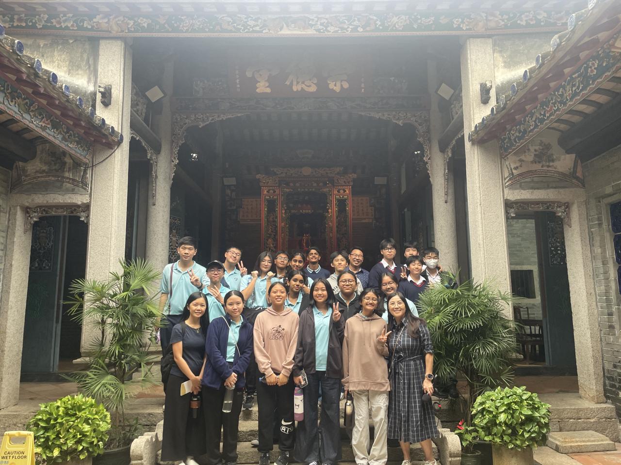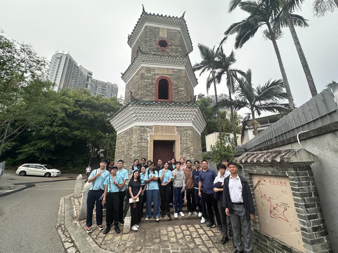 姊妹學校新加坡立德中學(Riverside Secondary School)於 10 月 27 日到訪本校。除了安排同學交流兩地文化、教育、風俗外,亦安排同學參與全日不同課堂,包括體育、物理、化學、生物、視覺藝術和咖啡拉花燈活動,體驗香港中學生活。下午課節後,由本校地理科同學帶領姊妹學校師生遊覽屏山文物徑,體驗中國的嶺南建築與圍村歷史文化。