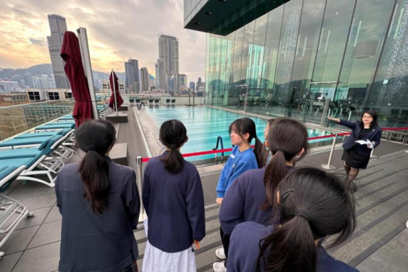 中五級修讀旅遊與款待科的學生,參與由香港理工大學酒店與旅遊管理系統籌參觀活動,活動內容包含:與大學學生交流大學生活、認識理大旅遊學院的課程內容及唯港薈酒店參觀,此活動讓學生親眼目睹酒店營運過程,為課本知識加上額外真實體驗。