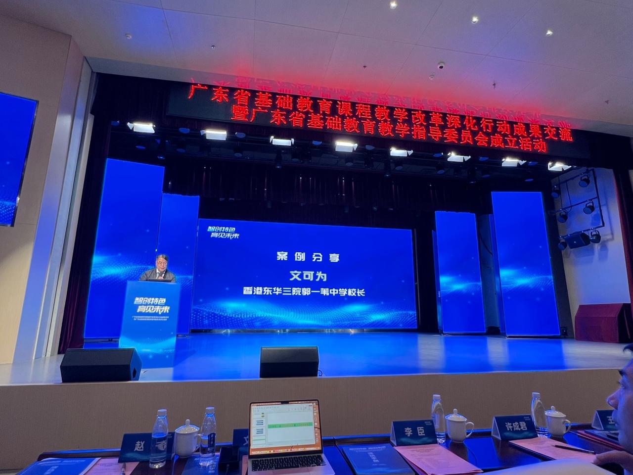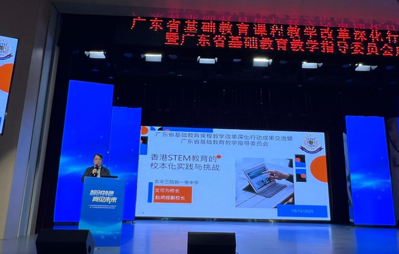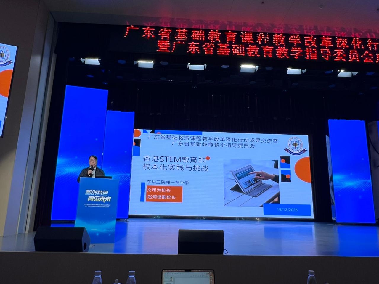 本校主辦的「元朗區⼩學科學科專業學習社群學與教協作⽀援計劃」於 12 月 19 日(星期五)與計劃先導學校參與「廣東省基礎教育課程教學改革深化行動成果交流暨廣東省基礎教育教學指導委員會成立」活動,本校文可為校長及趙炳鏗副校長應大會邀請於早上的交流會中以「香港STEAM 教育的校本化實踐與挑戰」為題進行分享。