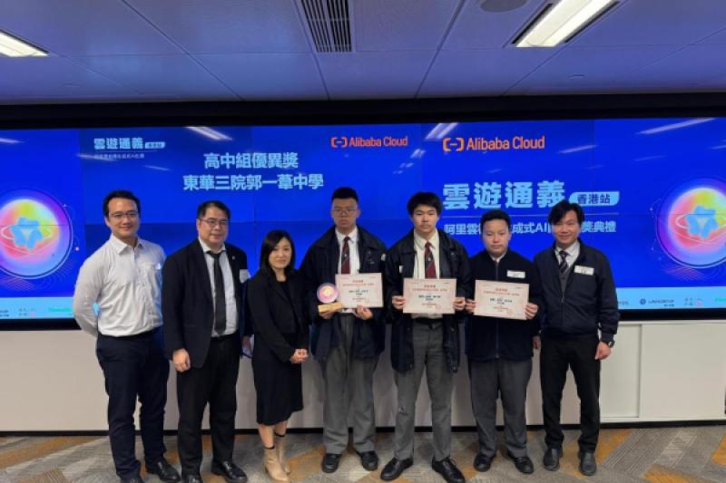 本校中四級學生汪峻羲、鄭學佳、許子軒參與「雲遊通義—阿里雲校際生成式AI比賽香港站」,在近300支學校隊伍中脫穎而出,成功入選獲獎名單,榮獲高中組優異獎。
