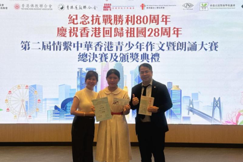 熱烈祝賀學生榮獲「第二屆情繫中華香港青年作文暨朗誦大賽獲三等獎」