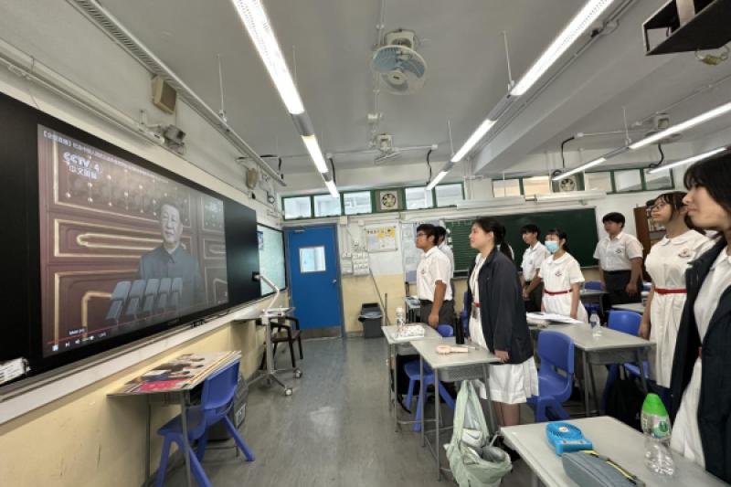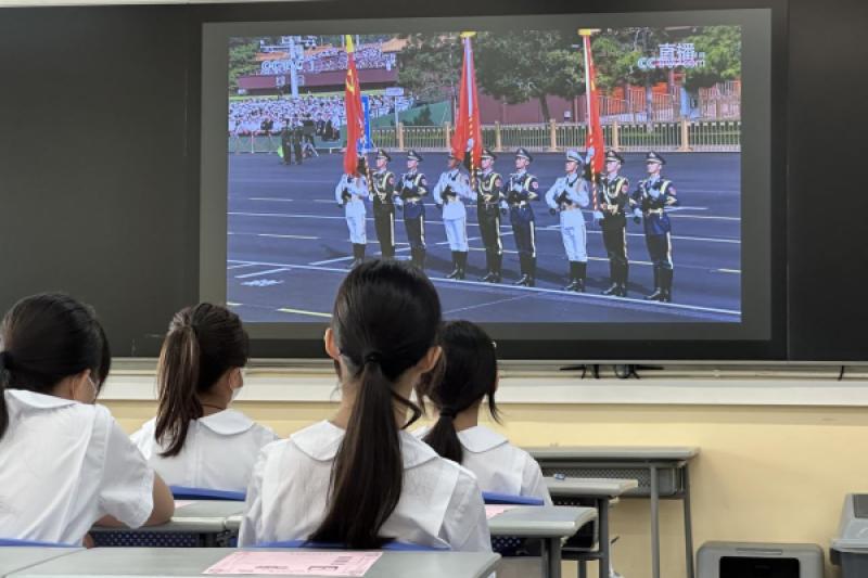 本校全體同學在9月3日「中國人民抗日戰爭勝利紀念日」於校內一起收看閱兵直播,讓學生正確認識抗戰歷史,同時緬懷保家衛國的抗日先烈,以培養學生的國民身份認同。