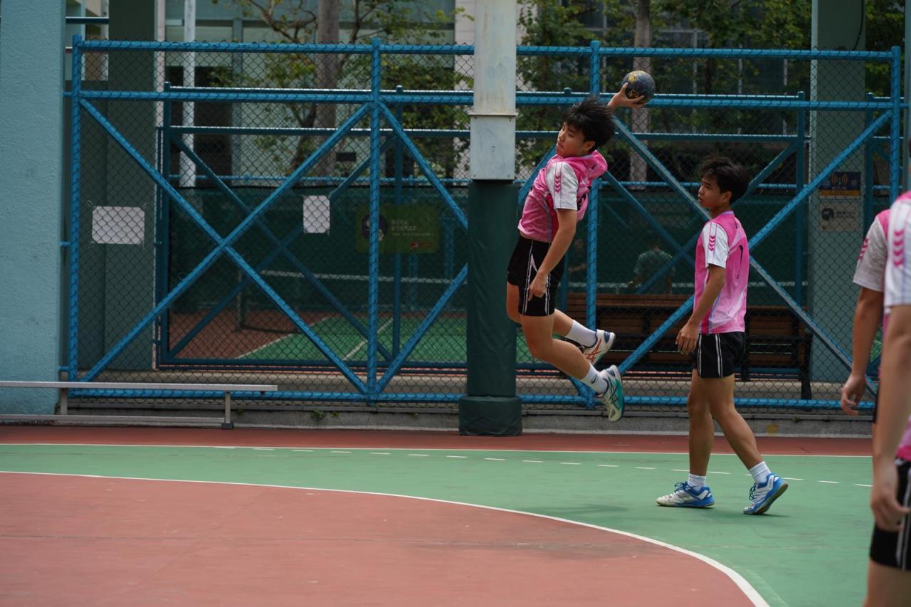 郭中手球隊甲組成員於彩虹道球場與博愛醫院陳楷紀念中學校隊進行友誼賽。期望透過與高水平球隊對賽,提升球員的眼界及經驗。