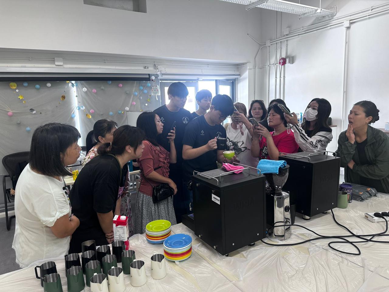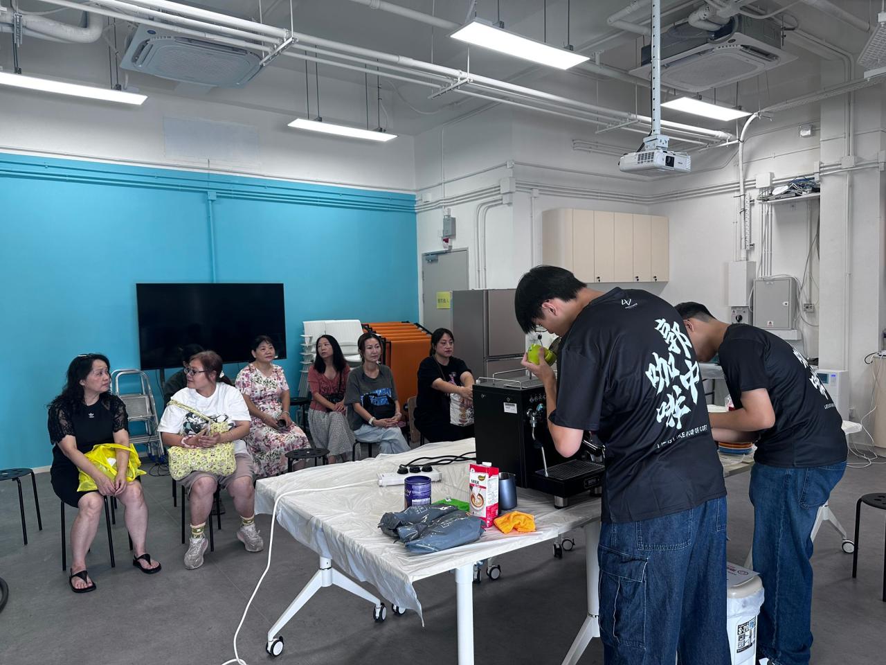 本校咖啡拉花隊6D林偉倫、5E劉彥江及2B郭子諾同學前往元朗攸壆路簡約公屋進行鄰舍咖啡拉花義教體驗班,教導鄰舍街坊們學習基本咖啡拉花技巧!