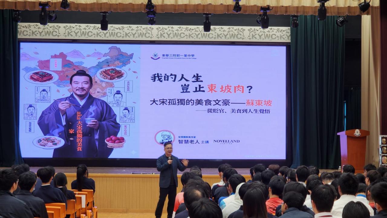 閱讀策略推廣委員會於 12 月 19 日舉行「閱讀主題作家講座--我的人生豈止東坡肉?」,分享嘉賓為張志偉(筆名:智慧老人),作品曾連續三年入選十本好讀三甲。講座從大宋大文豪蘇軾的被貶經歷、美食和人生覺悟,學習以正面積極的態度面對人生逆境。