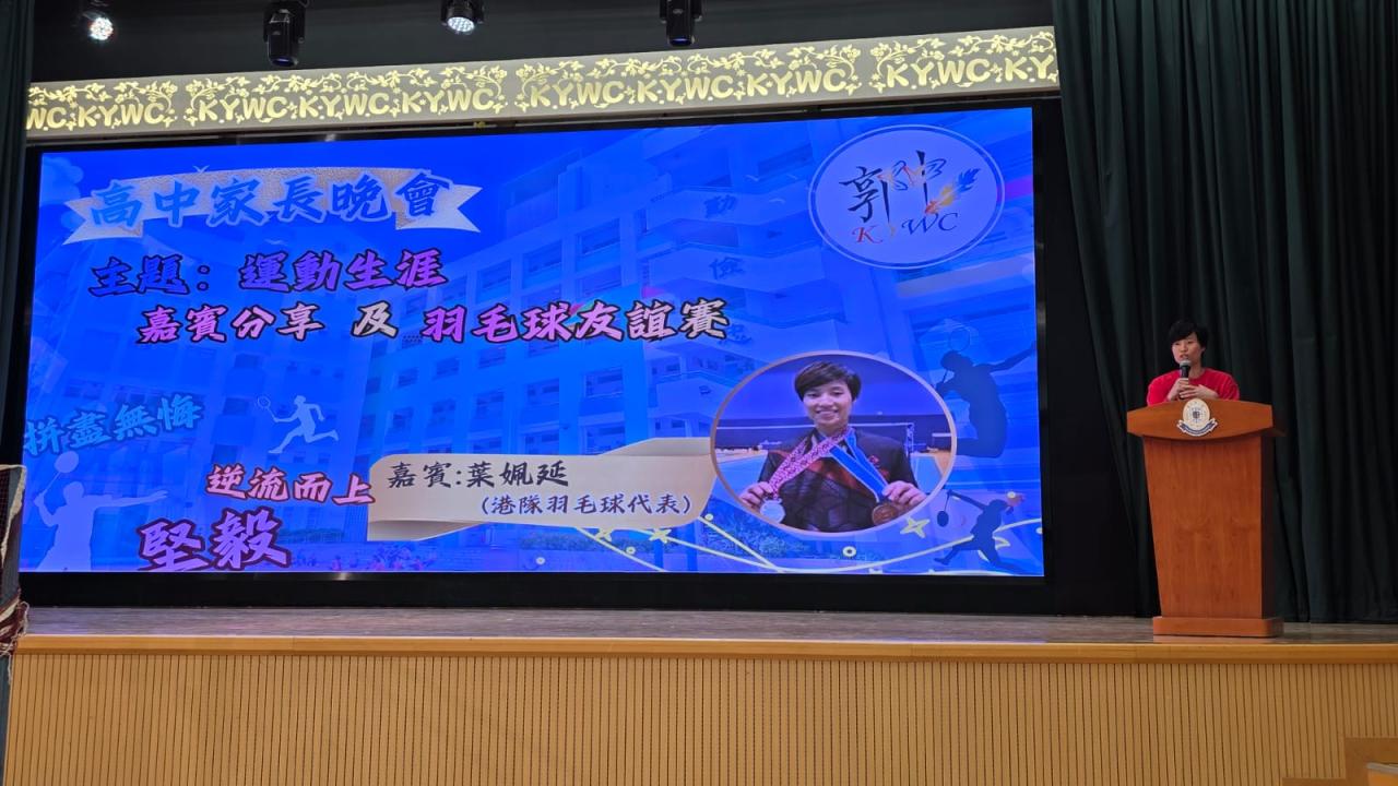 高中家長晚會 香港羽毛球代表運動員葉姵延撥冗蒞臨擔任嘉賓及進行師生家長友誼賽