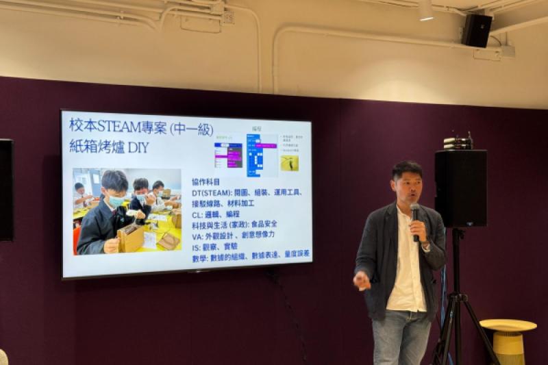 本校 24 位初中學生參與由PMQ Seed主辦的 18 小時創意營,運用設計思維理念,從「感官」出發,構思並製作出多款優化校園環境的創新裝置。學生作品早前更獲邀於PMQ元創坊公開展出,向公眾介紹設計概念與創作理念,贏得一致好評。同場,本校唐瑞康助理校長及黃達鏗老師亦與教育界同工分享設計思維在中學課程中的實踐經驗,交流成果與心得。