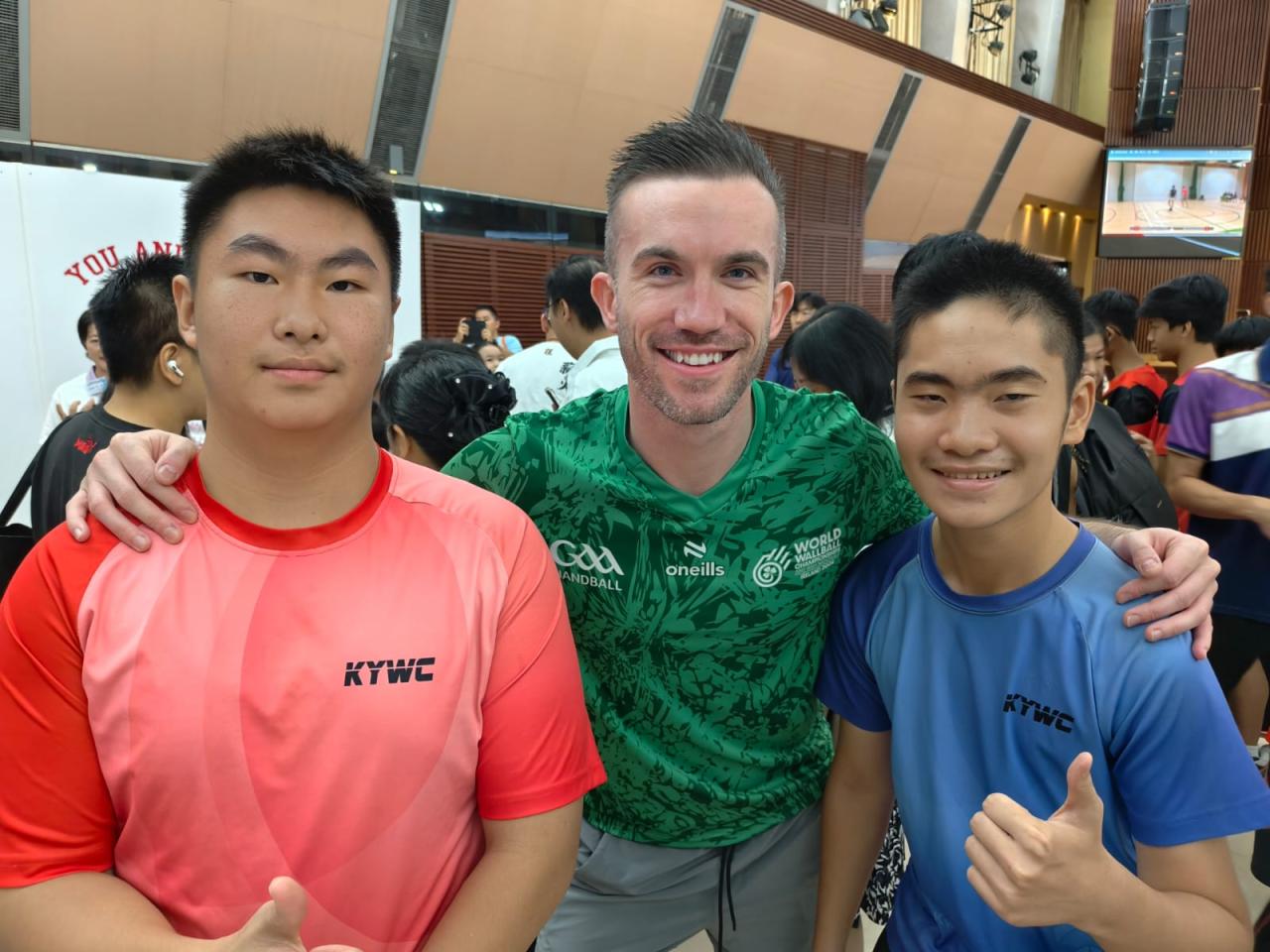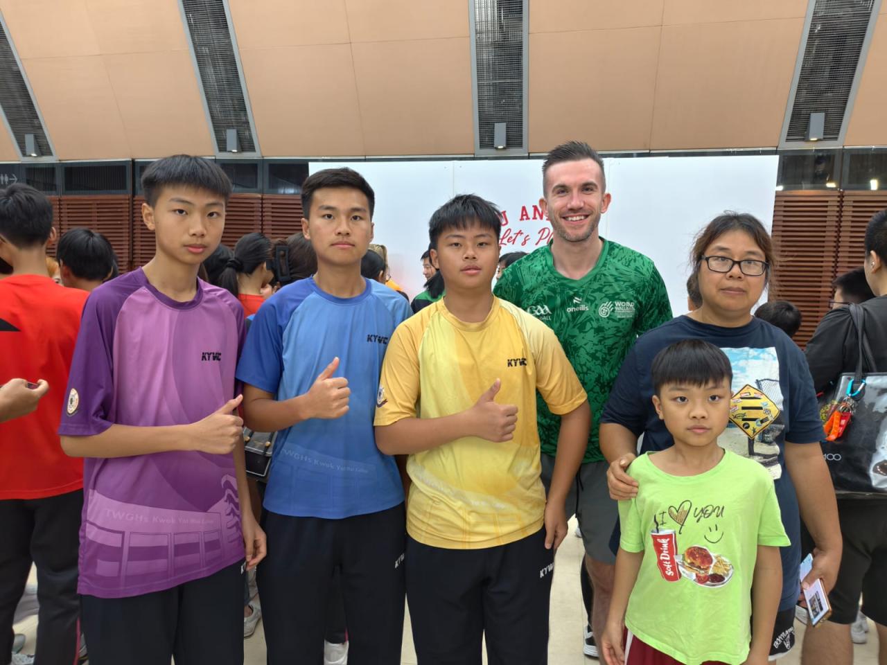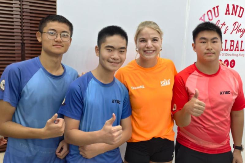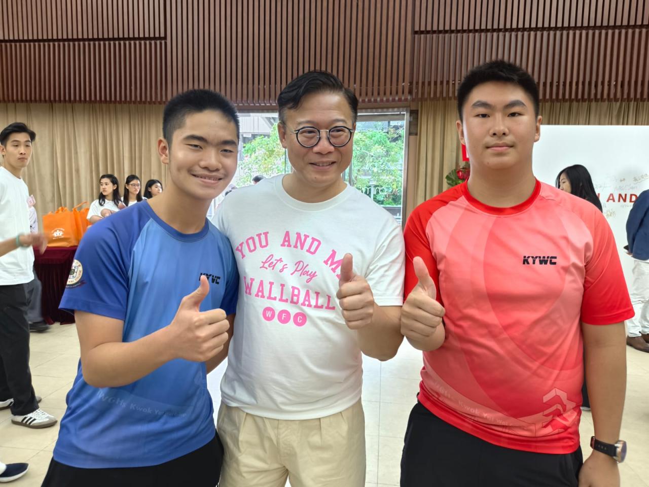 本校 8 位學生及家長代表於 10 月 19 日到尖沙咀街坊福利會活動中心出席「You and Me基金會牆球體驗暨啟動禮」活動,並與港隊代表及世界冠軍代表合照,以響應推動體育風氣,豐富學生對體育運動的學習體驗,提升學生正向心靈健康價值觀。