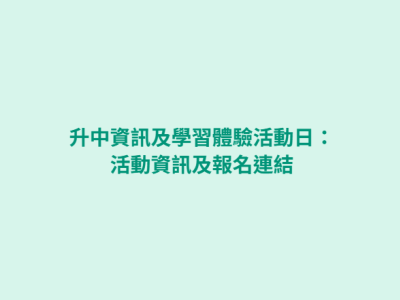 升中資訊及學習體驗活動日:活動資訊及報名連結
