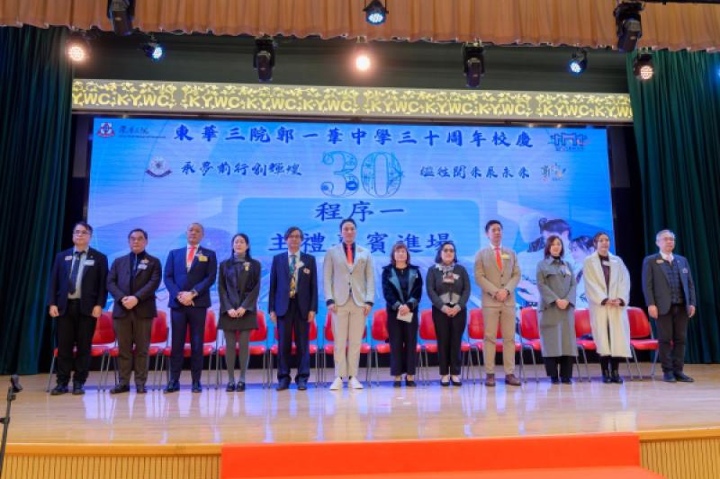 為了慶賀東華三院郭一葦中學創校三十周年紀念,本校於 2026 年 1 月 9 日及 1 月 11 日舉行「三十周年校慶典禮暨開放日」,感謝主禮嘉賓教育局副秘書長課程及質素保證科陳碧華博士、主禮嘉賓香港教育大學協理副校長 (學術質素保證)及心理學系教授楊少詩教授、東華三院主席兼名譽校監何猷啟先生、本校校監東華三院第三副主席伍怡先生、東華三院董事局成員及各位嘉賓撥冗蒞臨,見證學生的成長及學校的發展。
