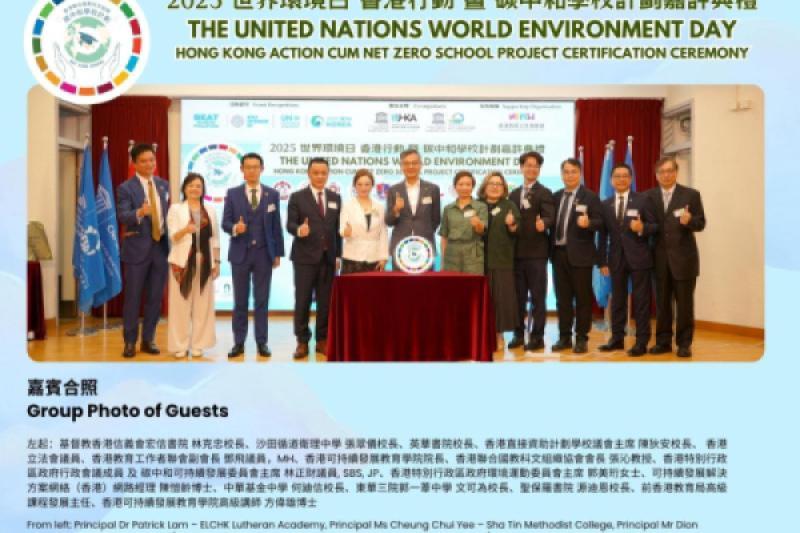 環保教育及ESG組參與香港聯合國教科文組織協會與香港可持續發展學院合辦的「碳中和學校計劃」,獲頒授「碳中和示範校」嘉許牌,將可持續發展理念融入課程與校園管理,從碳報表的建立到碳審計,再延伸至項目製STEAM研學。活動在聯合國環境規劃署官方平台 United Nations "ACT4SDGs" 進行註冊, 為全球「世界環境日」行動之一,文校長更獲邀擔任「校長論壇」分享嘉賓,向社會分享低碳及可持續發展的理念與實踐。