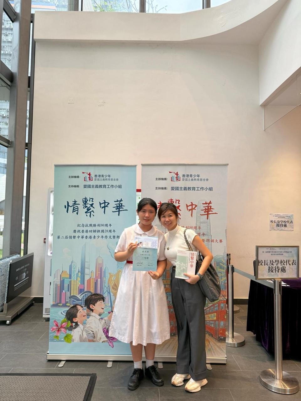 6A 吳燕穎同學於「第二屆情繫中華香港青年作文暨朗誦大賽」獲三等獎及$1000現金獎。吳同學獲獎作品,同時刊登於「第二屆情繫中華香港青年作文暨朗誦大賽」優秀作品選篇。