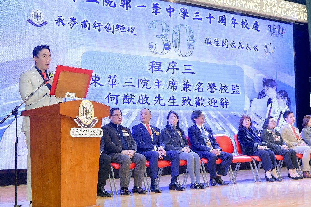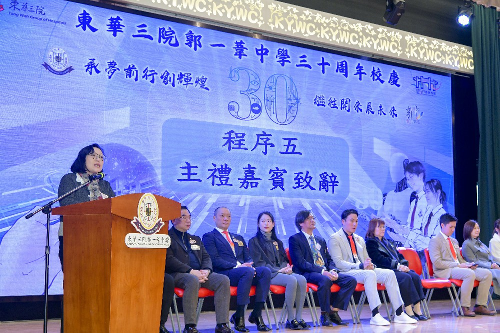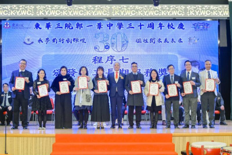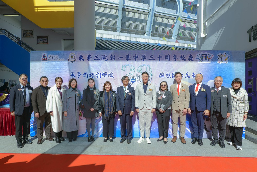 本校於 2026 年 1 月 9 日及 1 月 11 日舉行「三十周年校慶典禮暨開放日」,感謝主禮嘉賓教育局副秘書長課程及質素保證科陳碧華博士、主禮嘉賓香港教育大學協理副校長 (學術質素保證)及心理學系教授楊少詩教授、東華三院主席兼名譽校監何猷啟先生、本校校監東華三院第三副主席伍怡先生、東華三院董事局成員及各位嘉賓撥冗蒞臨,見證學生的成長及學校的發展。