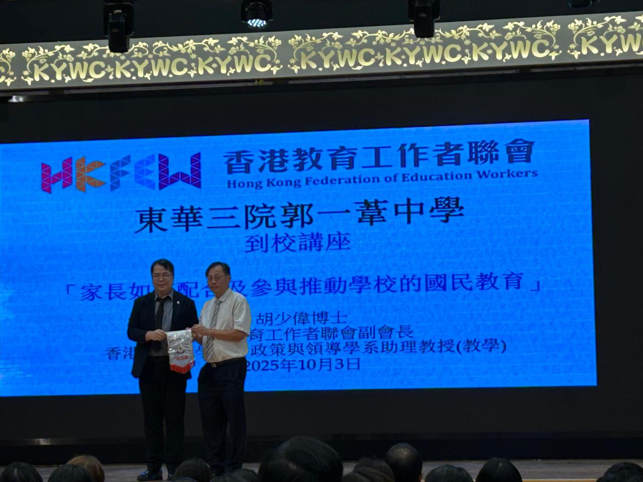 本校於 2025 年 10 月 3 日舉行「中一家長晚會」,內容豐富充實,包括校長分享教育理念、課後支援與全方位活動介紹,以及國民教育講座。活動體現學校重視家校合作,促進學生全人發展,並積極推動國家安全教育,共建關愛共融的校園文化,攜手培育學生成才。