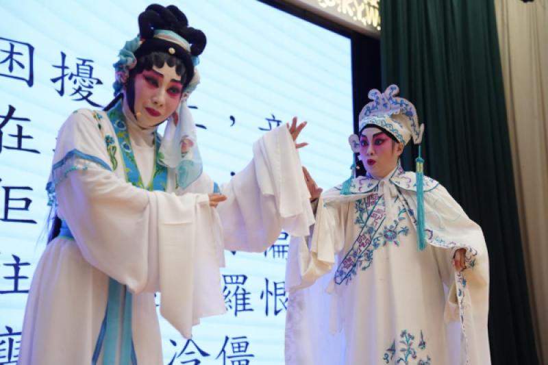 中國文化周週會以「粵劇」為主題,透過欣賞折子戲及互動環節,加深學生對粵劇的認識。