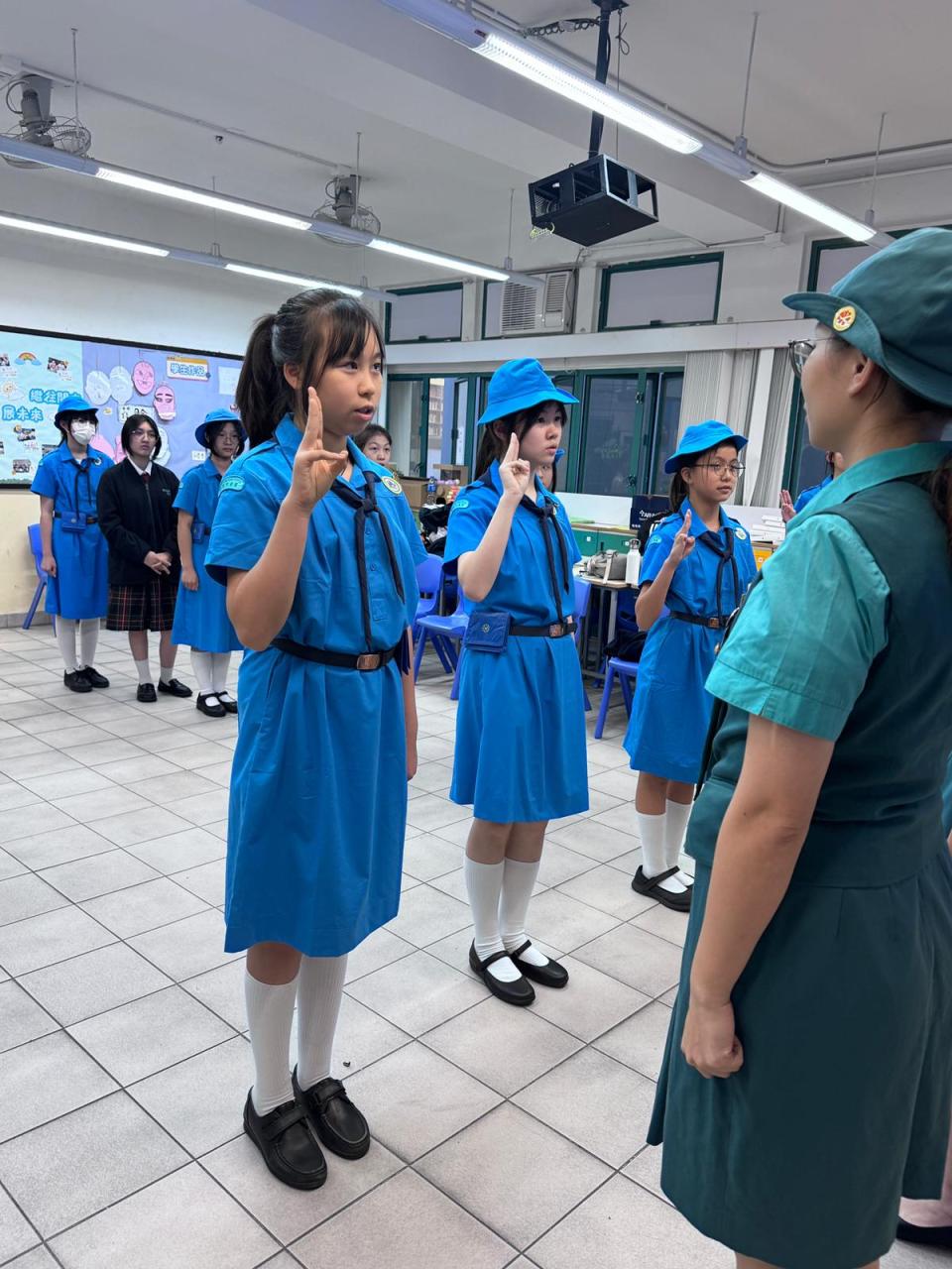 本校女童軍於 2026 年 3 月 4 日進行宣誓,新成員朗誦宣誓詞,承諾遵循女童軍的價值觀。負責老師強調團隊精神與服務重要性,並頒發徽章象徵新身份。活動不僅標誌著新成員的加入,也展現了女童軍的團結與奉獻精神。
