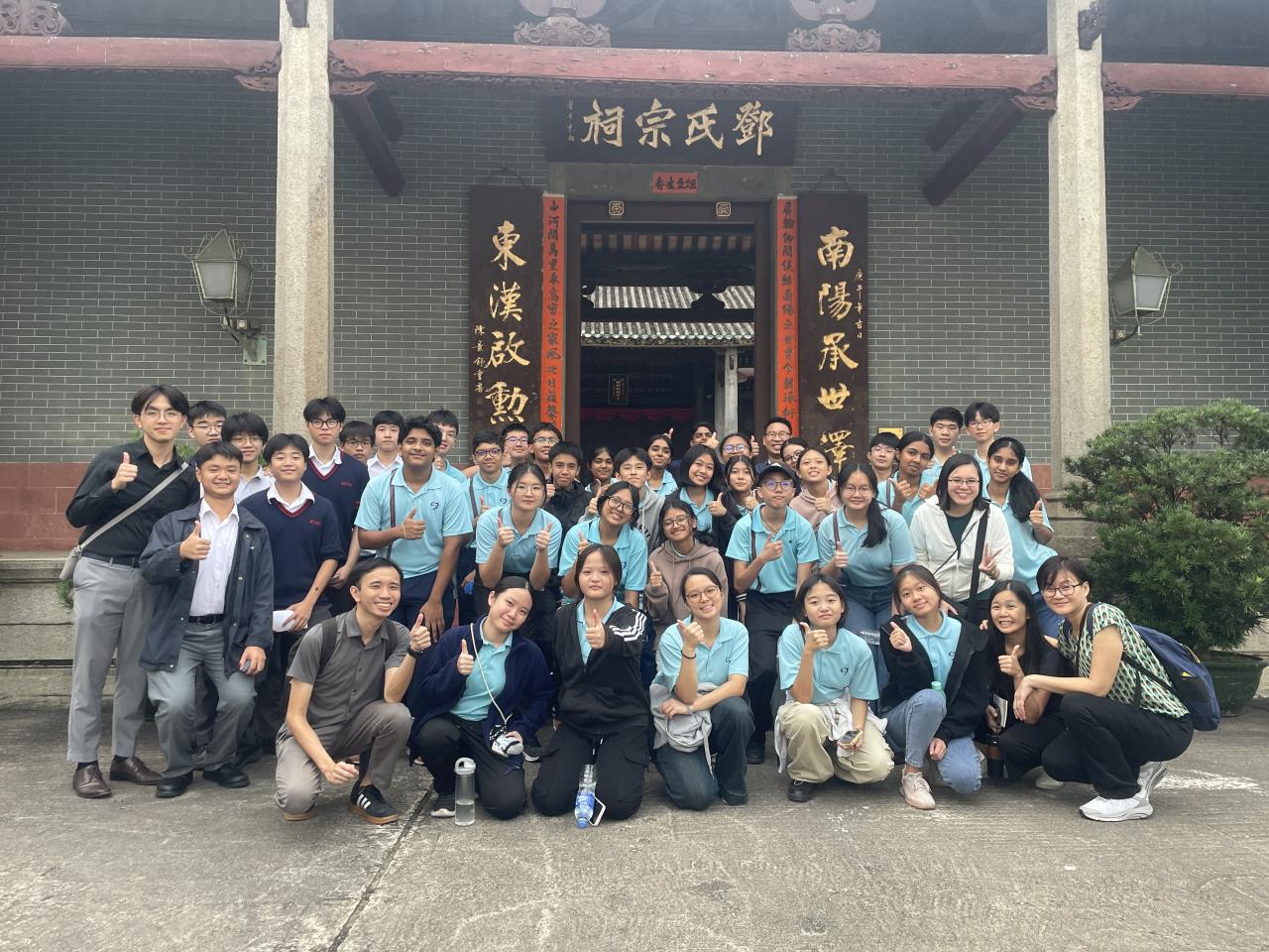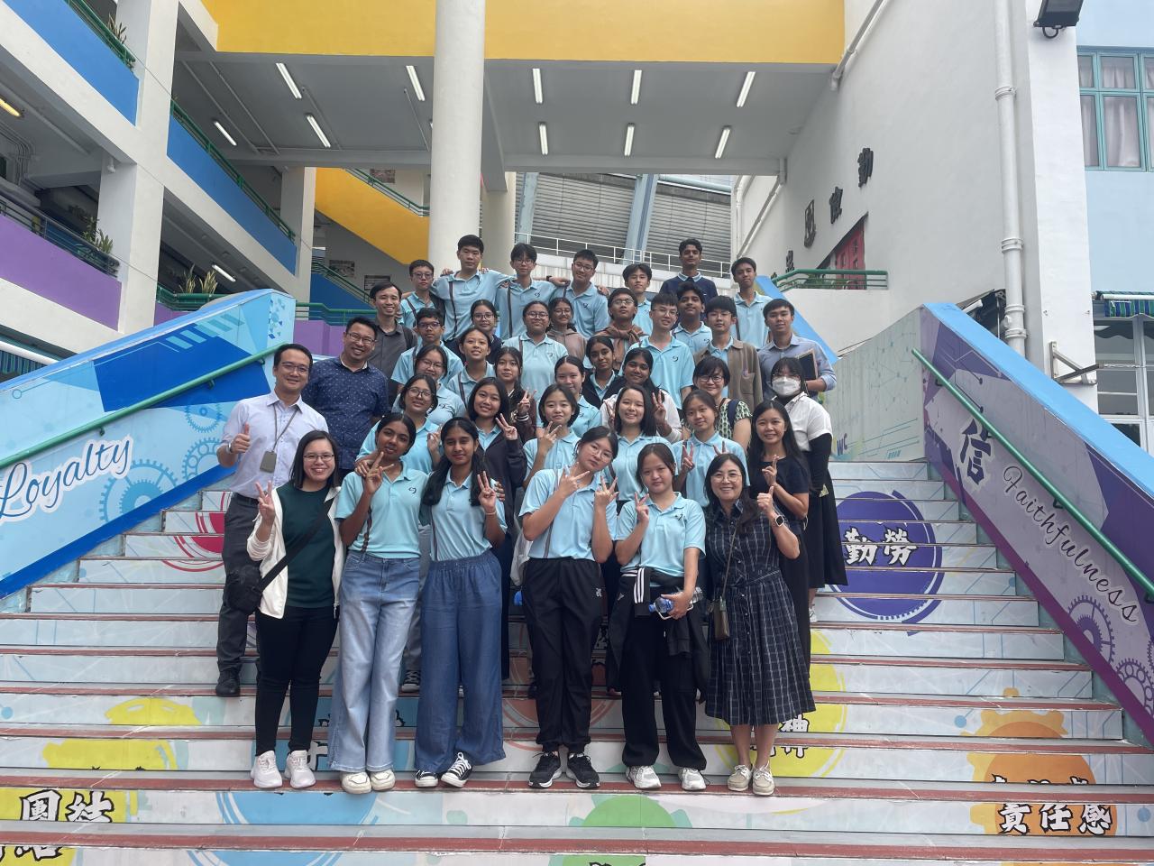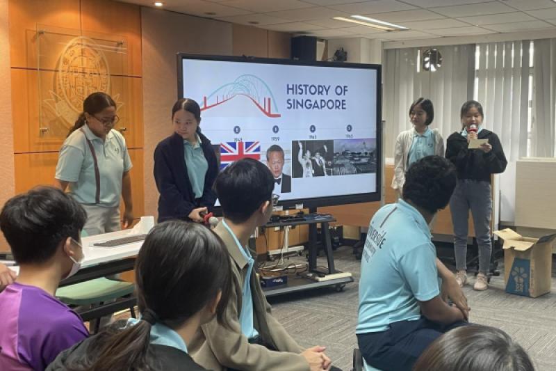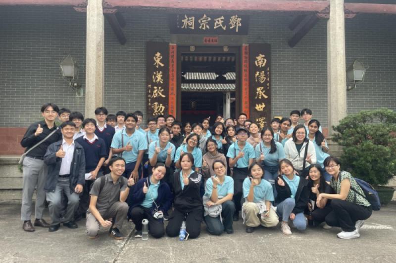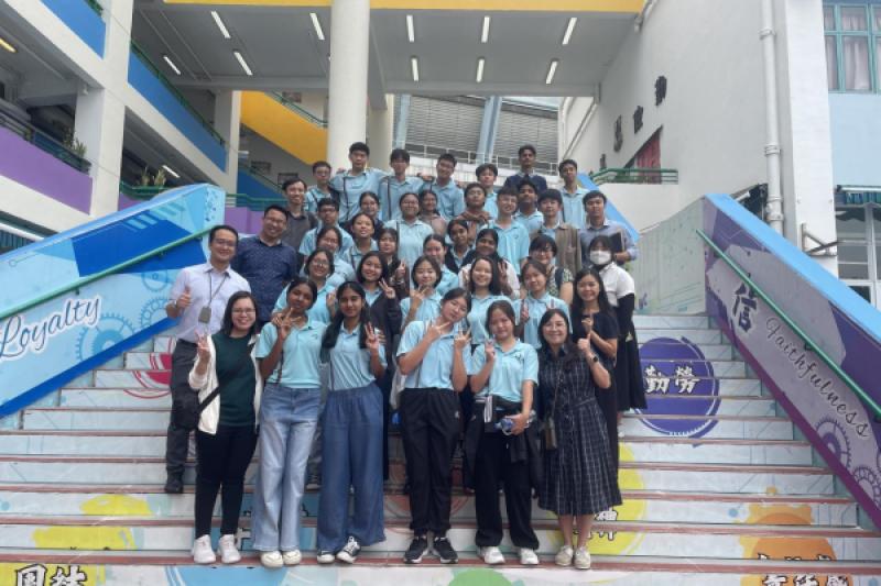 姊妹學校新加坡立德中學(Riverside Secondary School)於 10 月 27 日到訪本校。除了安排同學交流兩地文化、教育、風俗外,亦安排同學參與全日不同課堂,包括體育、物理、化學、生物、視覺藝術和咖啡拉花燈活動,體驗香港中學生活。下午課節後,由本校地理科同學帶領姊妹學校師生遊覽屏山文物徑,體驗中國的嶺南建築與圍村歷史文化。