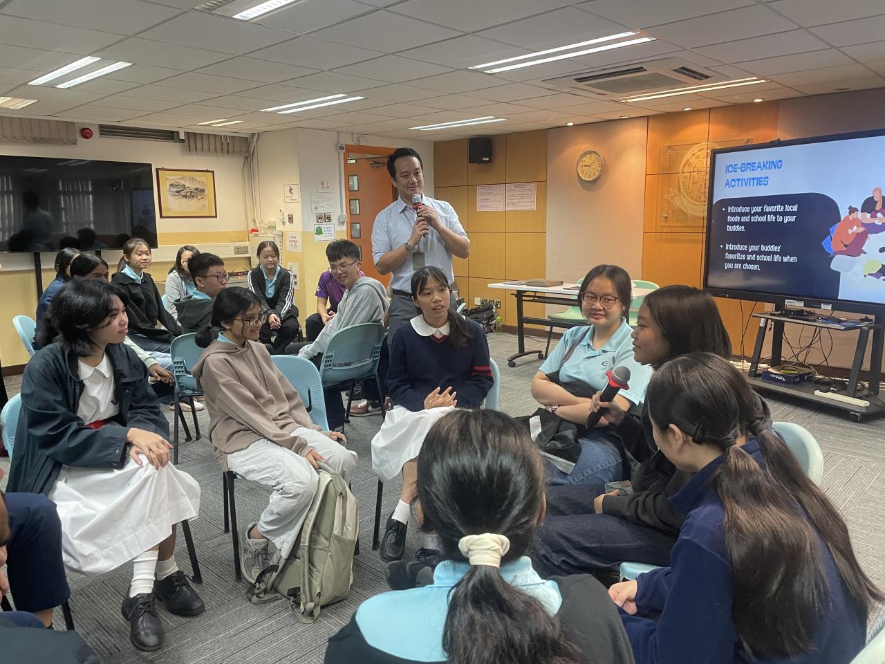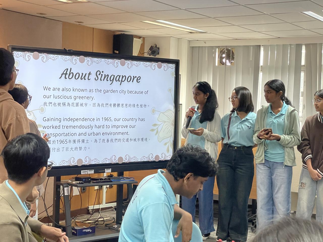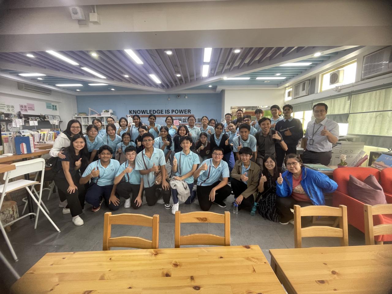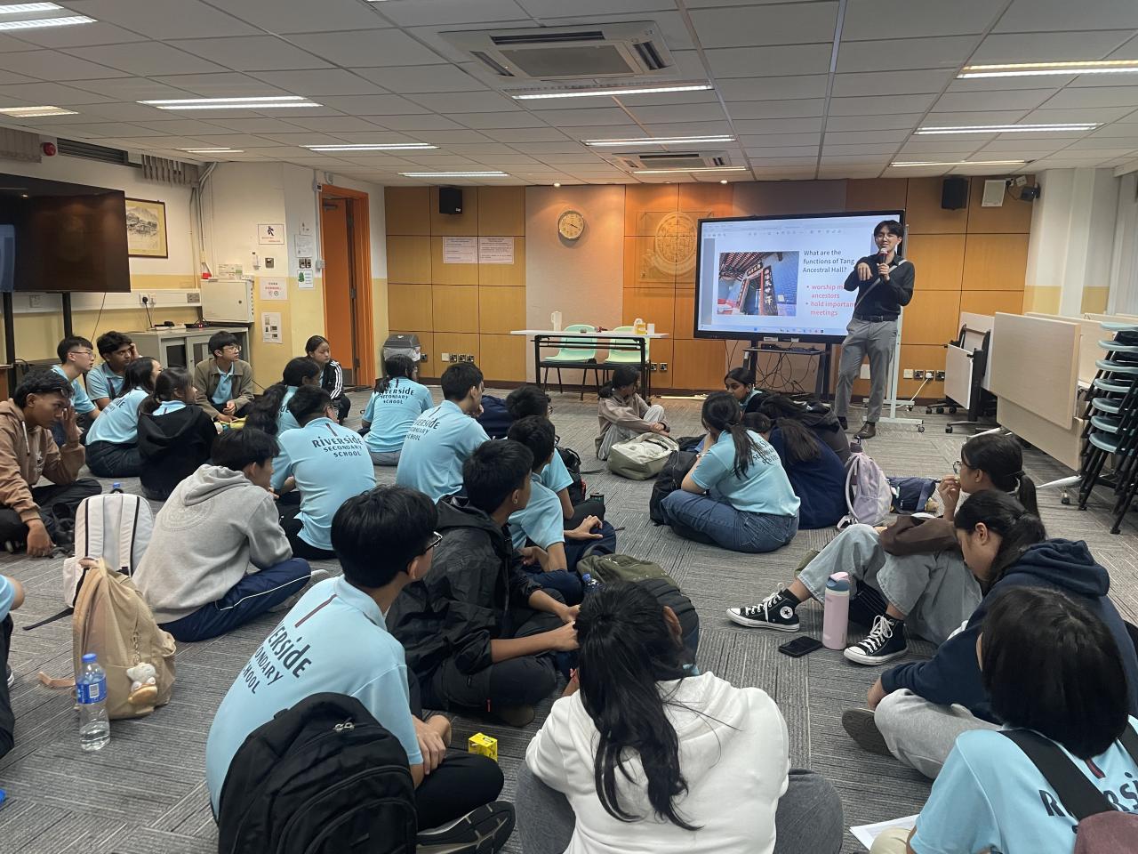 姊妹學校新加坡立德中學(Riverside Secondary School)於 10 月 27 日到訪本校。除了安排同學交流兩地文化、教育、風俗外,亦安排同學參與全日不同課堂,包括體育、物理、化學、生物、視覺藝術和咖啡拉花燈活動,體驗香港中學生活。下午課節後,由本校地理科同學帶領姊妹學校師生遊覽屏山文物徑,體驗中國的嶺南建築與圍村歷史文化。