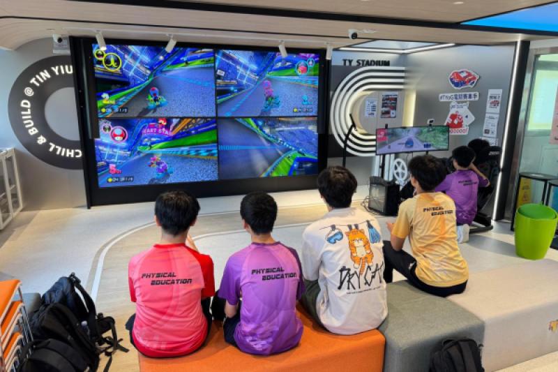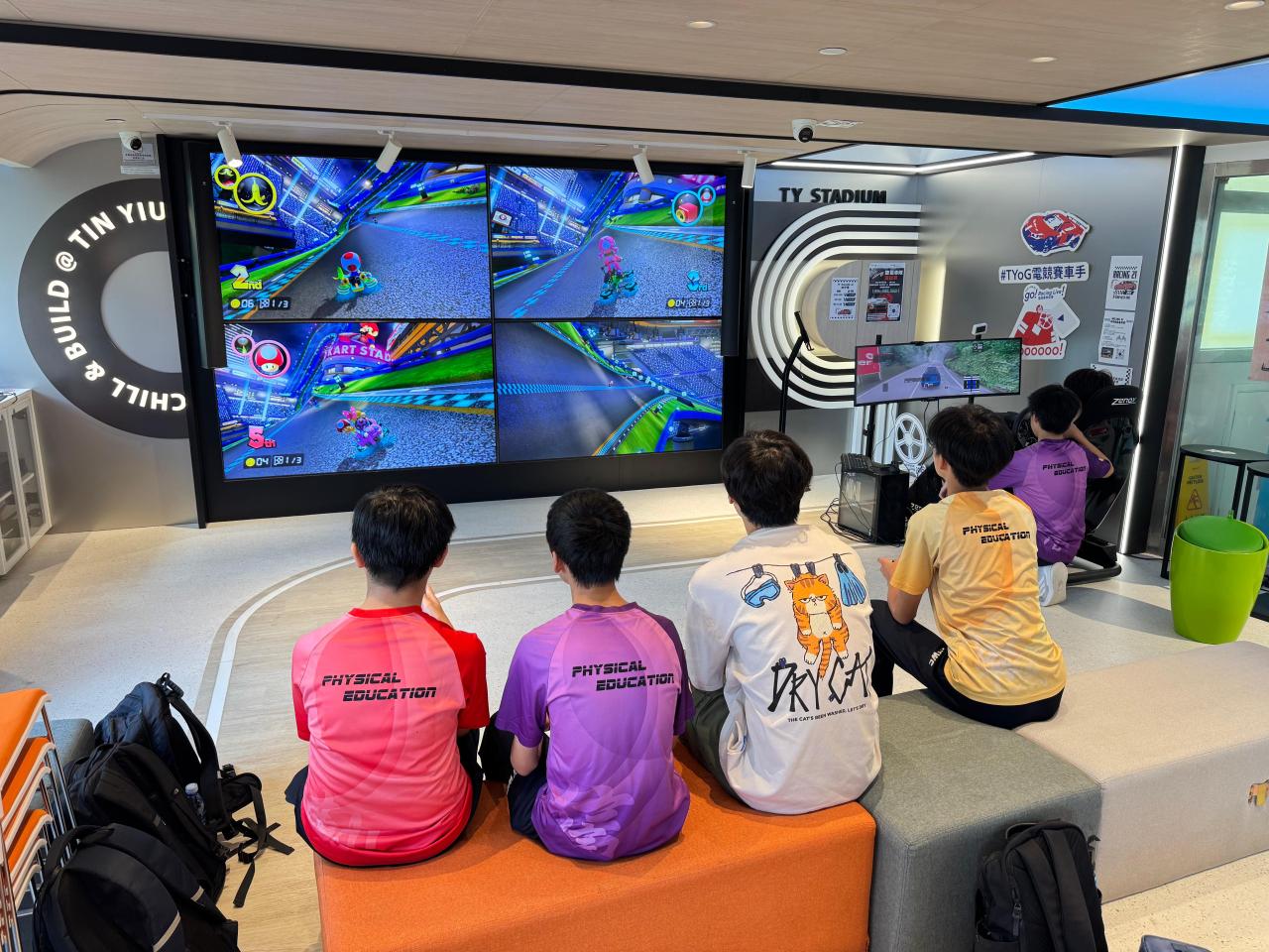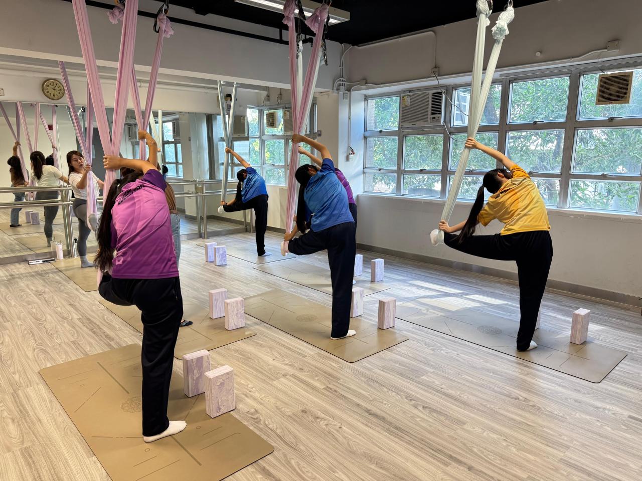 中三學生於賽馬會天耀青年空間參加「平行心間」體驗,透過空中瑜伽、音樂及桌遊等多元活動,促進身心靈健康發展,提升朋輩關係,培養抗逆力及幸福感,助學生在挑戰中茁壯成長。