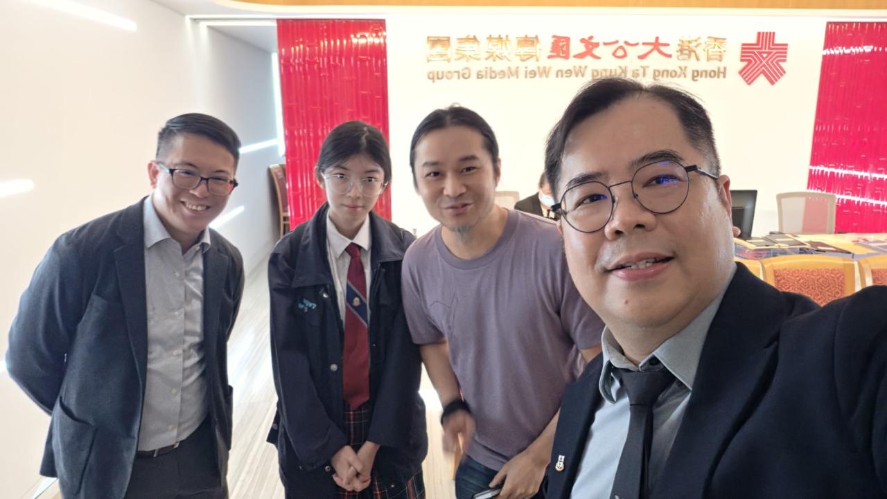 S4A 陳新怡代表本校出席由愛國主義教育工作小組指導、香港大公文匯傳媒集團主辦的「一企一校,攜手啟航」計劃交流座談會,分享透過國情閱讀、資源學習及比賽等活動,促進對國家政策和發展的了解。