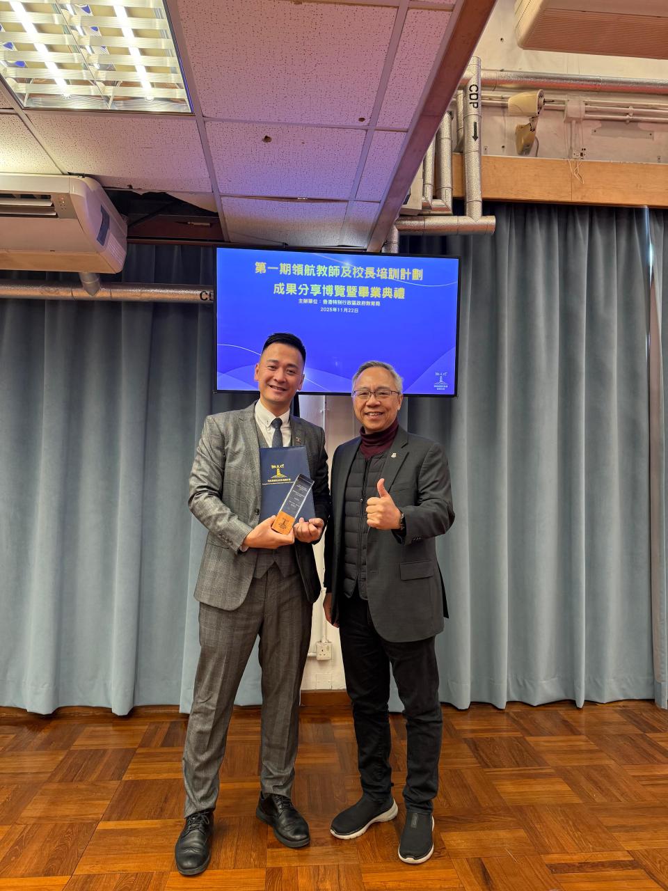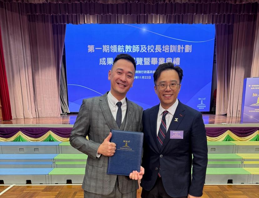 呂志仁主任獲東華三院委派,參與教育局第一期「領航教師及校長培訓計劃」,順利畢業!因表現良好,獲委任代表學員致謝辭!其中分享內容獲與會者高度肯定,相關報道及照片亦同步展示於教育局局長Facebook網站 。