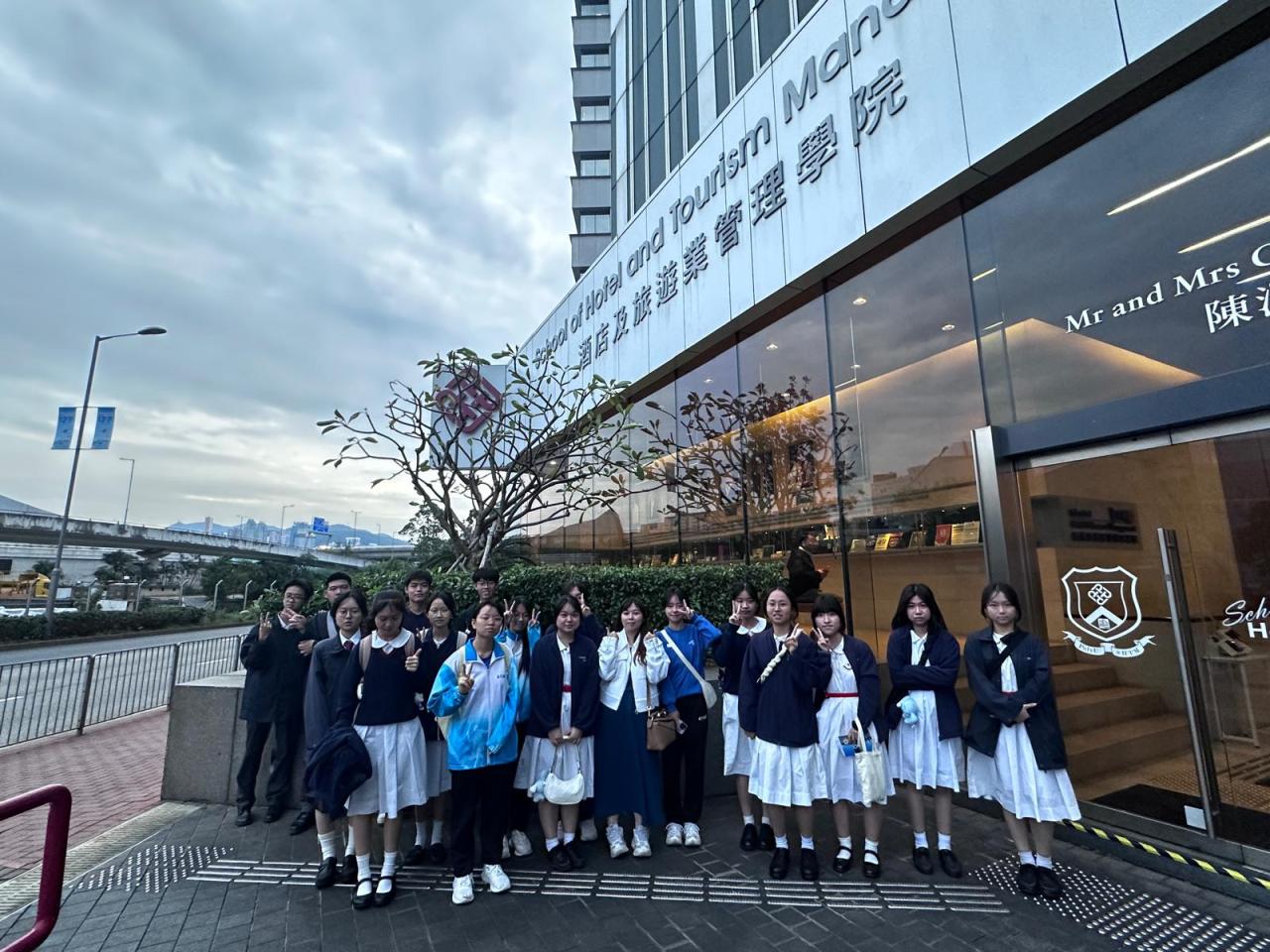 中五級修讀旅遊與款待科的學生,參與由香港理工大學酒店與旅遊管理系統籌參觀活動,活動內容包含:與大學學生交流大學生活、認識理大旅遊學院的課程內容及唯港薈酒店參觀,此活動讓學生親眼目睹酒店營運過程,為課本知識加上額外真實體驗。