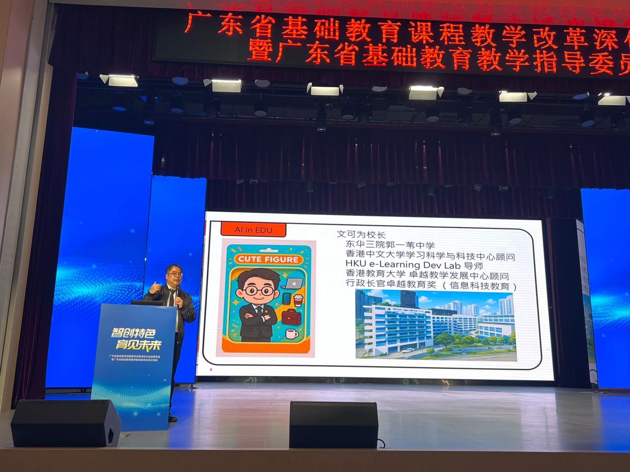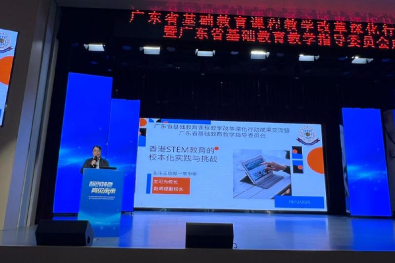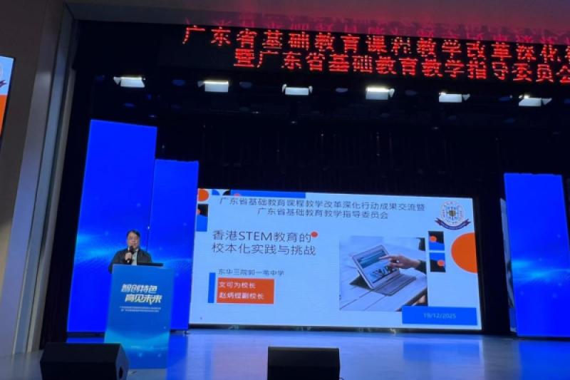 本校主辦的「元朗區⼩學科學科專業學習社群學與教協作⽀援計劃」於 12 月 19 日(星期五)與計劃先導學校參與「廣東省基礎教育課程教學改革深化行動成果交流暨廣東省基礎教育教學指導委員會成立」活動,本校文可為校長及趙炳鏗副校長應大會邀請於早上的交流會中以「香港STEAM 教育的校本化實踐與挑戰」為題進行分享。