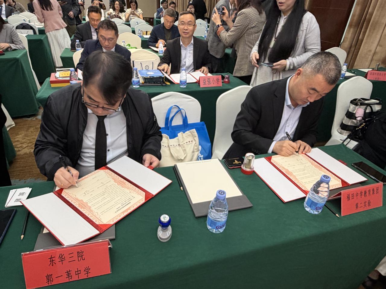 於下午本校與學習社群的小學友校與大灣區學校進行結締姊妹學校儀式。儀式後,學習社群的各友校參與三個平行工作坊,圍繞中小學科技教育、AI賦能課程教學改革、特色高中建設等主題開展研討。
