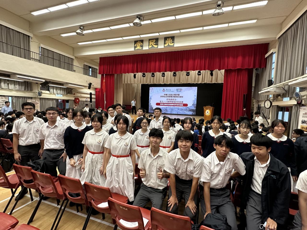 本校學生出席「東華三院紀念抗戰勝利80周年講座」,主辦方邀得香港浸會大學歷史系教授譚家齊教授,由學術角度分析九‧一八事變的因由和後世可借鑑之處,學生獲益良多。