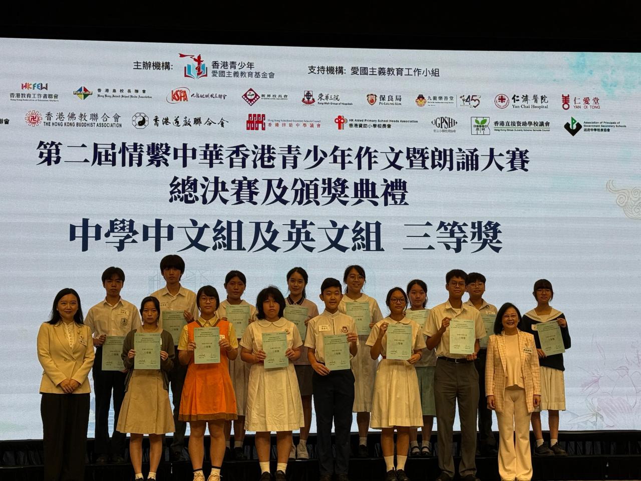 熱烈祝賀學生榮獲「第二屆情繫中華香港青年作文暨朗誦大賽獲三等獎」
