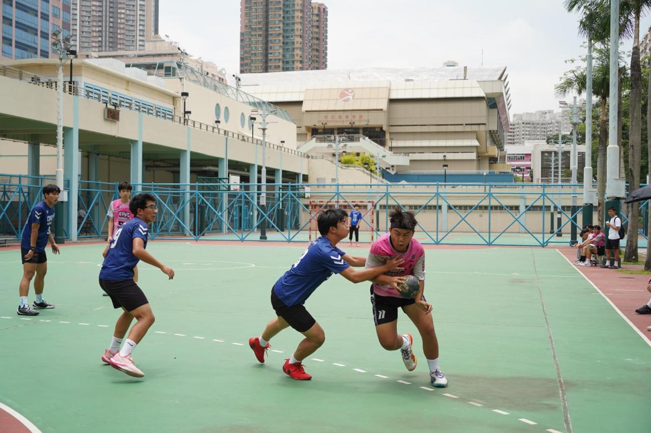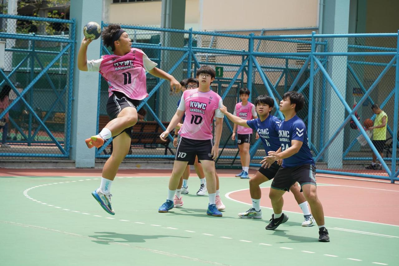 郭中手球隊甲組成員於彩虹道球場與博愛醫院陳楷紀念中學校隊進行友誼賽。期望透過與高水平球隊對賽,提升球員的眼界及經驗。