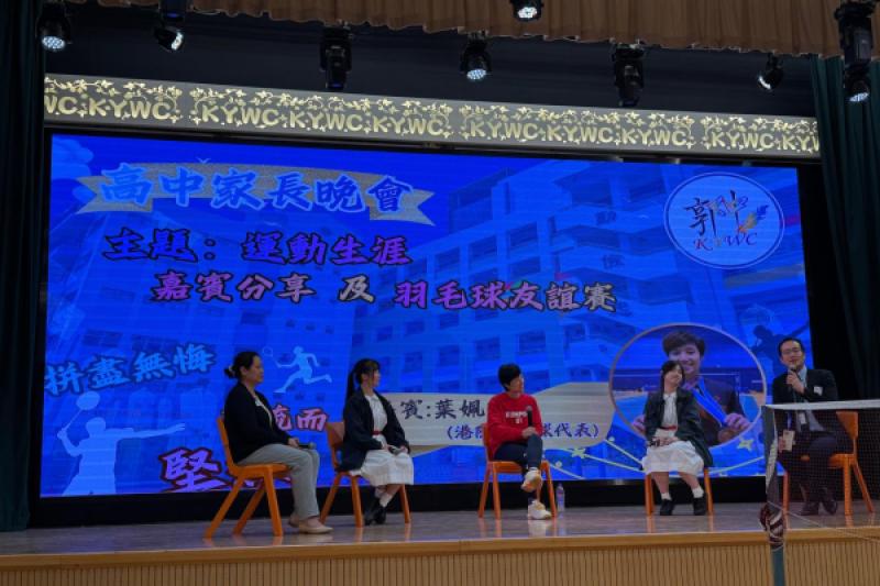 本校於 2025 年 10 月 28 日舉行「高中家長晚會」,感謝前香港羽毛球代表運動員葉姵延(黑妹)撥冗蒞臨擔任嘉賓。葉姵延曾於亞運會擊敗當時世界排名第一、奧運金牌得主張寧,憑藉堅毅不屈的精神,一次又一次創造奇蹟。她分享的心路歷程,深深激勵了在場的老師、家長和學生,學習如何面對困難與壓力。當晚更安排了與黑妹即場對戰的環節,場面既興奮又刺激,全場觀眾都十分投入。