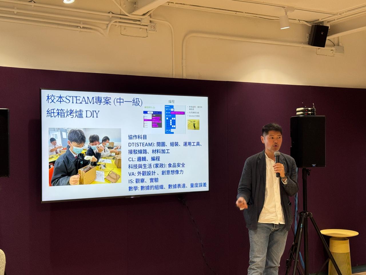 本校 24 位初中學生參與由PMQ Seed主辦的 18 小時創意營,運用設計思維理念,從「感官」出發,構思並製作出多款優化校園環境的創新裝置。學生作品早前更獲邀於PMQ元創坊公開展出,向公眾介紹設計概念與創作理念,贏得一致好評。同場,本校唐瑞康助理校長及黃達鏗老師亦與教育界同工分享設計思維在中學課程中的實踐經驗,交流成果與心得。