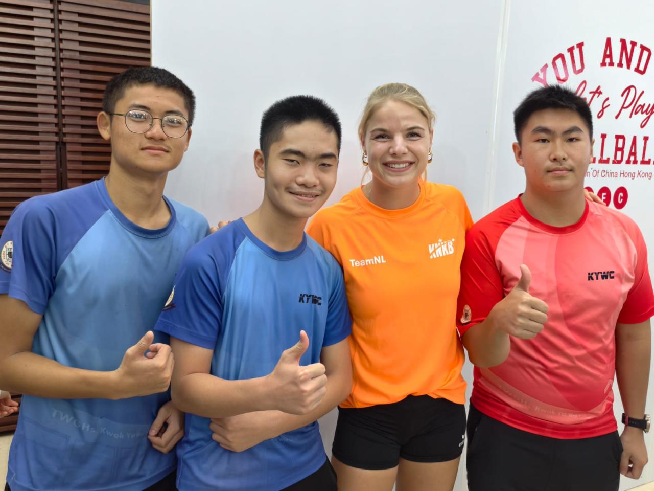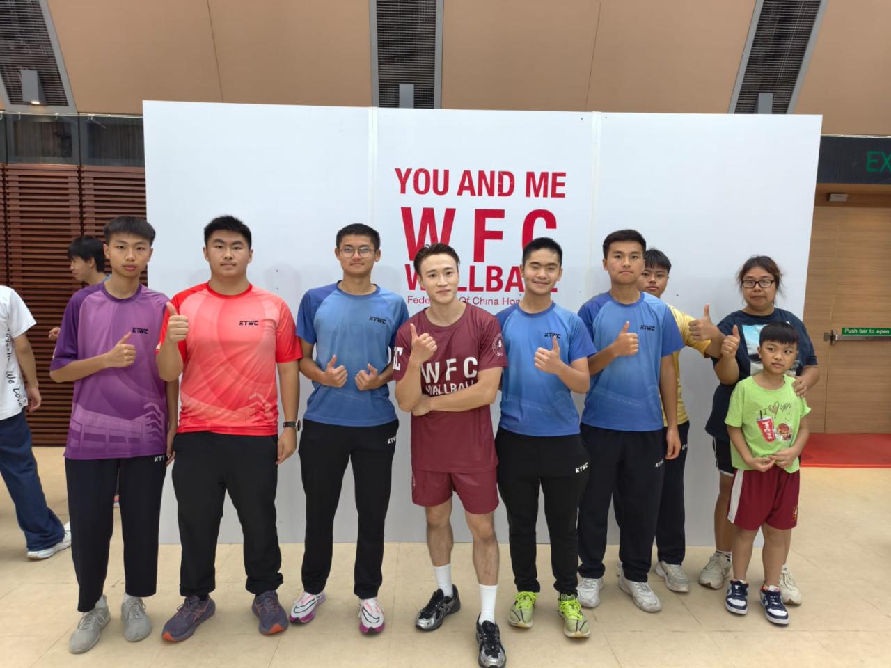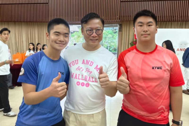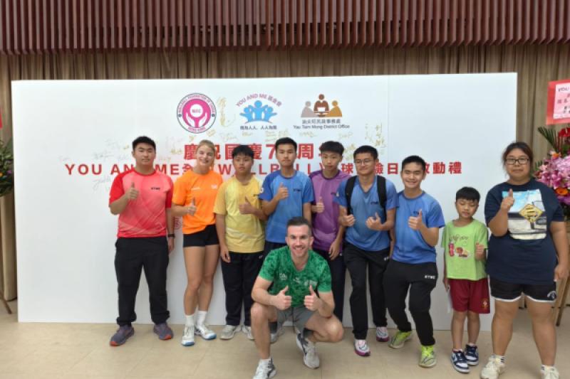 本校 8 位學生及家長代表於 10 月 19 日到尖沙咀街坊福利會活動中心出席「You and Me基金會牆球體驗暨啟動禮」活動,並與港隊代表及世界冠軍代表合照,以響應推動體育風氣,豐富學生對體育運動的學習體驗,提升學生正向心靈健康價值觀。
